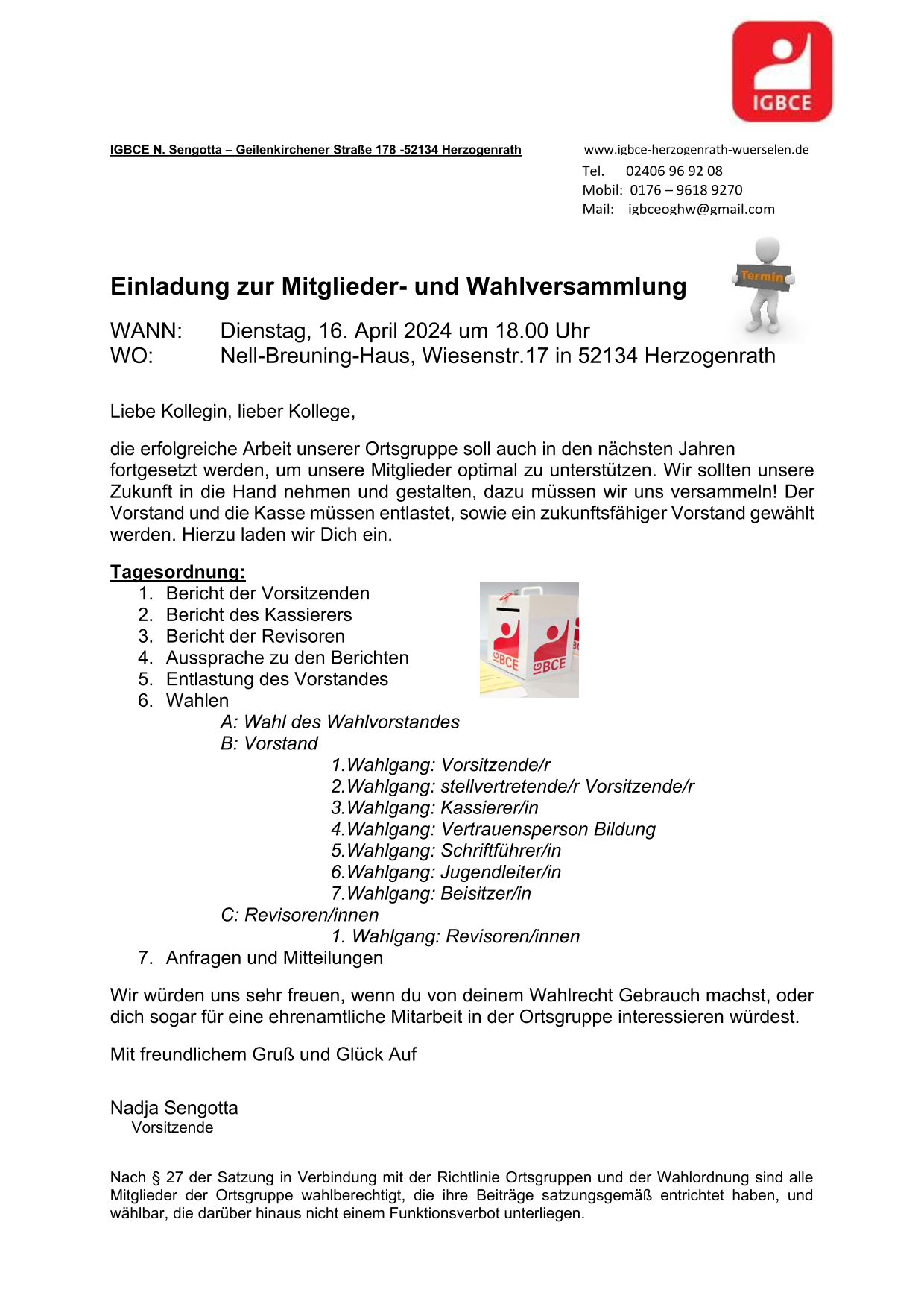 Mitgliederversammlung und Wahl des Vorstandes Wann April 18, 2024 6:00 p.m. - 9:00 p.m. Zum Kalender hinzufügen ICS herunterladen Google Kalender iCalendar Office 365 Outlook Live